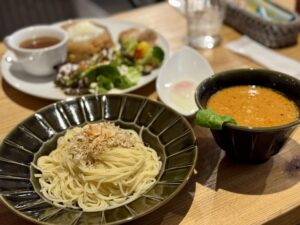 kamileon cafe 58のつけナポはニンニクの効いた魚介ベースのトマトソース。