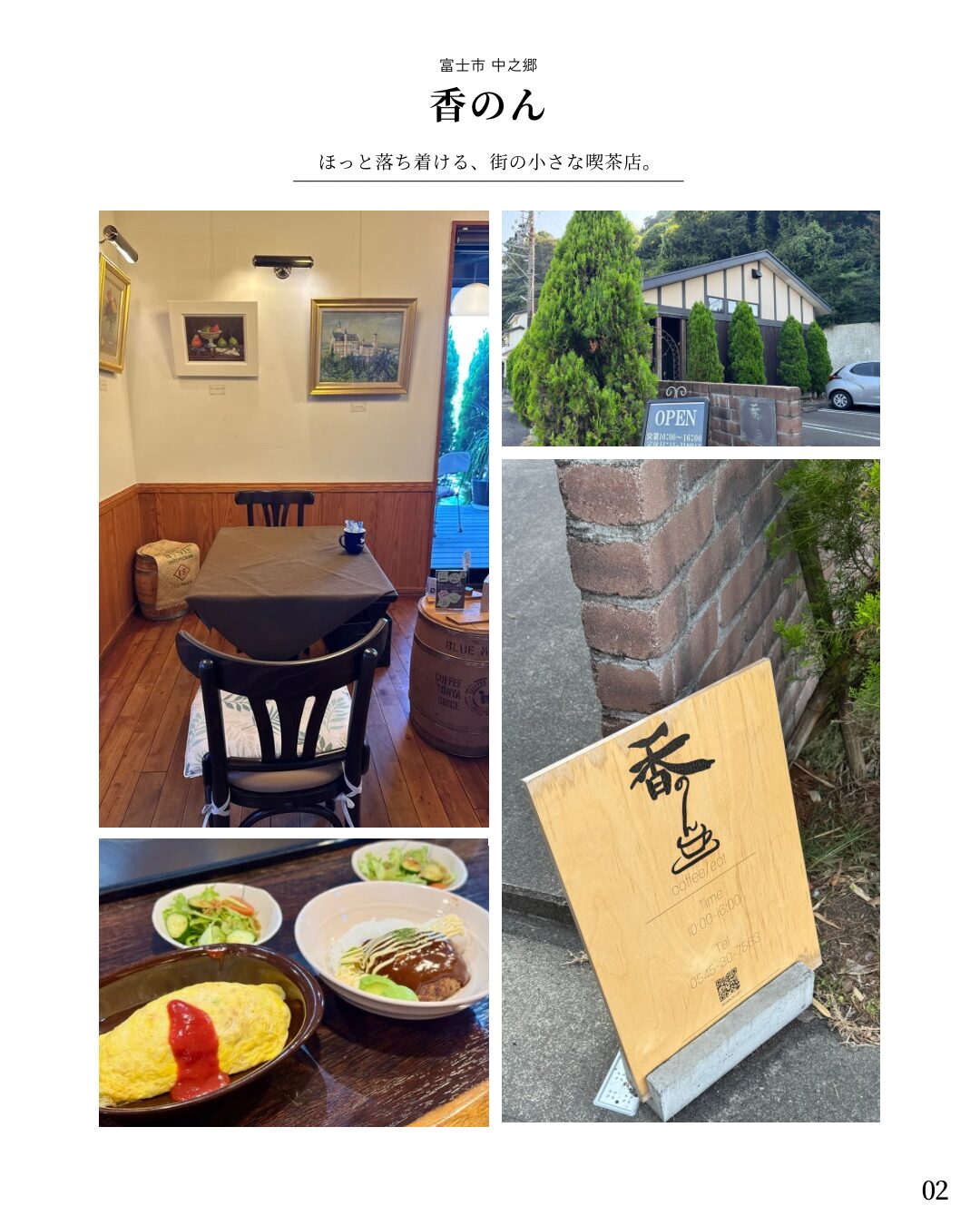 富士市中之郷にある「香のん」は、街の喫茶店のような温かみあふれるアットホームなカフェ。地元の人々に長く愛されるお店で、ランチや手作りスイーツをゆったり楽しめる特別な空間です。