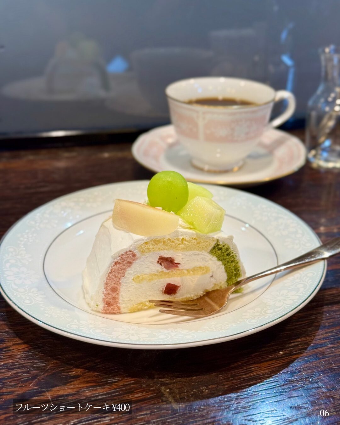 👉 食後にスイーツも食べてみたくなり、フルーツショートケーキを。