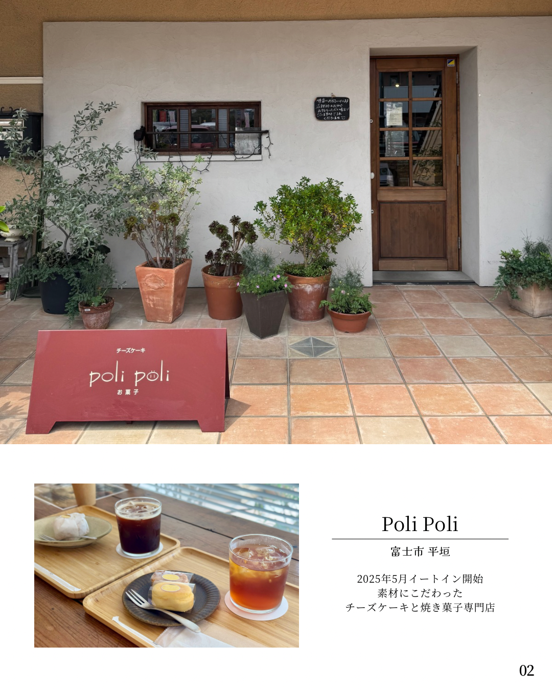 富士市平垣にある「PoliPoli(ポリポリ)」は、2025年5月にイートインをスタートしたチーズケーキと焼菓子の専門店。