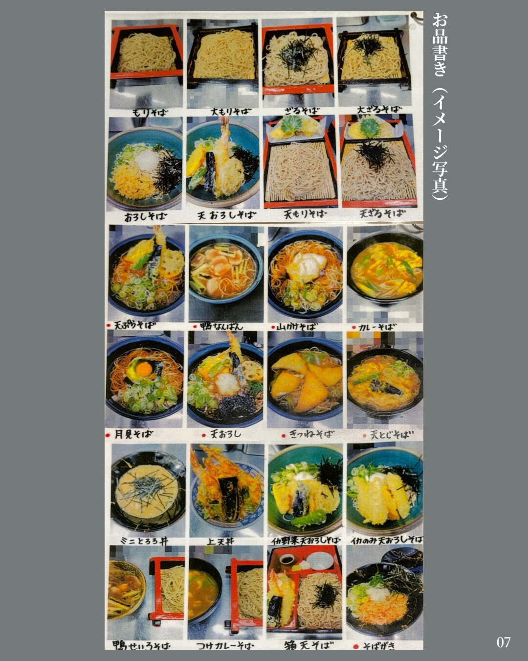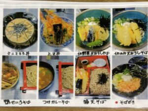 他にも鴨南蛮や、山かけ、月見そば、カレーそばなどメニューもいろいろ。