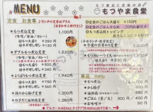 「もつやま食堂」は、もつ好きさんはもちろん、がっつり食べたい人にぴったりの定食屋さんでした。みそ・しょうゆ・カレー、どれも個性があって、季節や気分に合わせて選べるのも楽しいポイント。もつ以外のメニュー(唐揚げなど)もあるのが、また嬉しいです♪