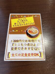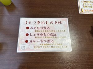 - 3種類から選べるモツ煮(みそ・しょうゆ・カレー)