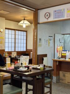 店内は昔ながらの定食屋さんの雰囲気で、テーブル席と座敷席があり、家族連れからお一人様まで気兼ねなく利用できます。