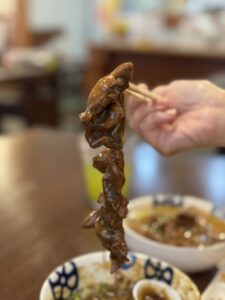 👉 スパイシーな香りが食欲をそそるカレーライス。追加で、ガラムマサラの粉をかけていただきました。モツの旨みがしっかり染み込み、スパイシーさもありながらちょっと甘めな味付けも食べやすかったです。ご飯も盛り盛りなボリューム満点の一皿でした。