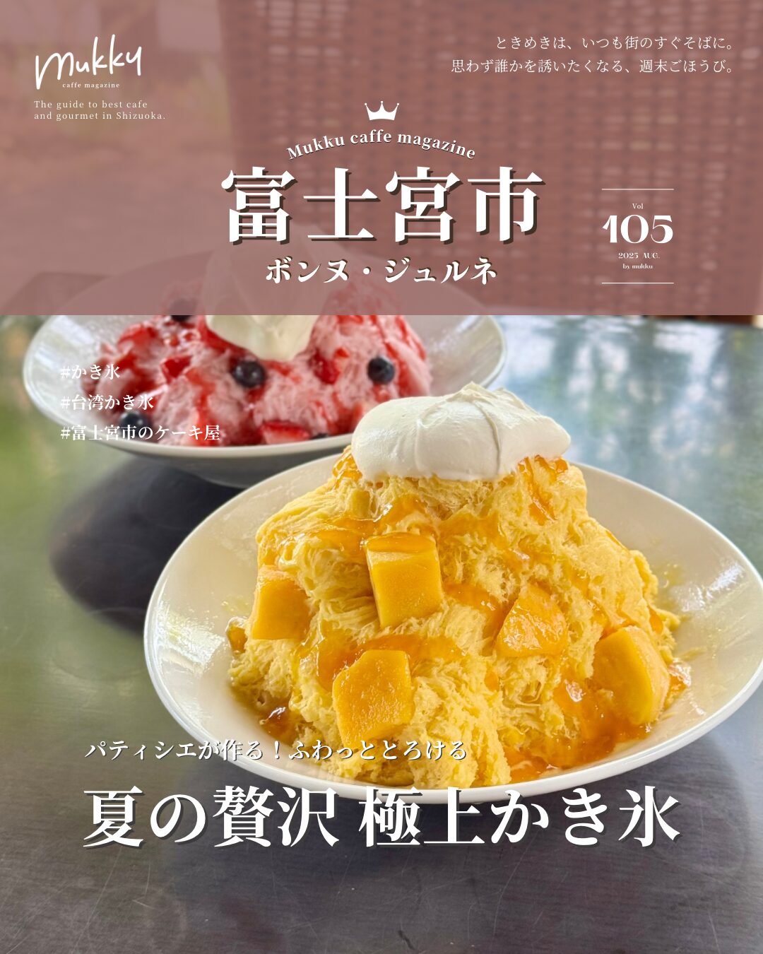 今回は夏の一大人気メニュー「富士山かき氷」をご紹介。ケーキ屋さんが作る台湾風のかき氷。ふわふわの氷とクリーム、そして果実が織りなす贅沢な味わいは、まるでケーキを食べているかのよう✨真夏の富士宮でしか味わえない、この季節ならではのご褒美スイーツです🍧✨