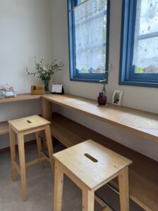 店内はナチュラルウッドを基調とした明るい雰囲気で、入り口右手には2人ほど座れるカウンター席がありました。