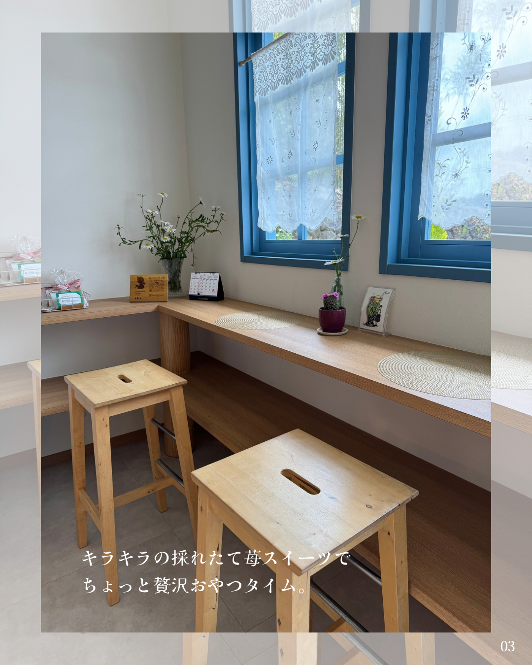 - 農園併設のカフェでいちごスイーツやドリンクを提供