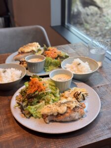 週替わりランチは、ドレッシングも手作りでこだわり詰まっています。栄養バランスも良く満足感たっぷり。