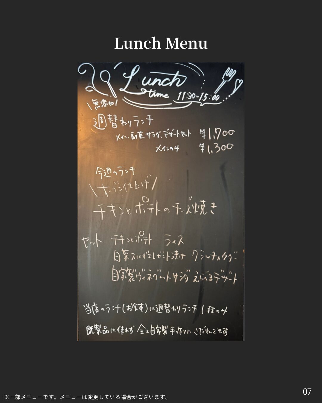 - 週替わりのやさしいワンプレートランチ