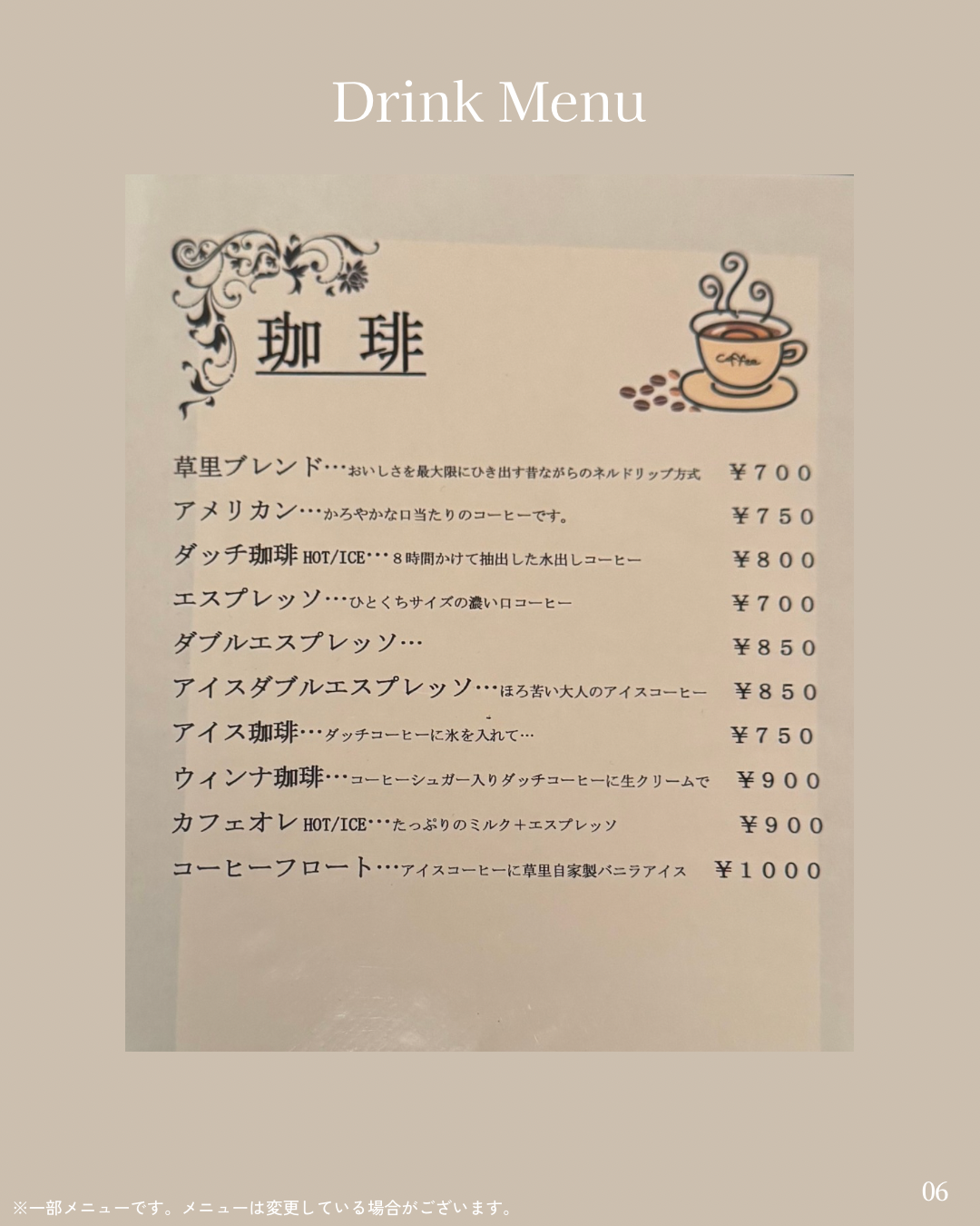 | 店名 | 珈琲処 草里 ( @cafe_zoree ) |